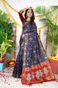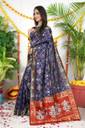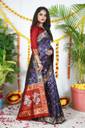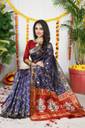 Grubstaker Printed Bandhani Pure Silk Saree (Blue)