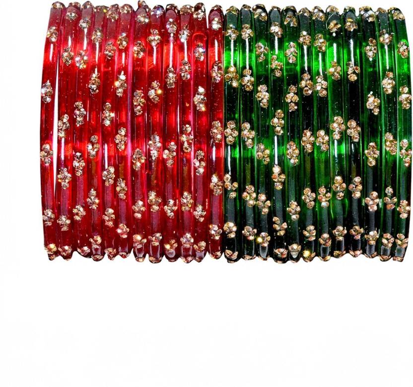 bangles for Women| Traditional Zircon studded Glass Bangles for Women| Green bangles and Red bangles for Women (12 Bangles in red colour and 12 bangles in green colour) Zircon Work Bangles in Green and Red Colour for Women (12 Bangles Each of 2 Colours Each)