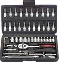 Auto maintenance kit 1/4-inch car repair tools main features: type: hand tools, combination, wrenches, sockets, ratchet, vehicle maintenance and repair tools ? Number of pieces: 46 package: box application: vehicle maintenance and repair ? Weight: 1.294 kg package size(L x W x H): 24.00 x 13.00 x 4.50 cm / 9.45 x 5.12 x 1.77 inches package contents: 1 x car repair tools kit ? Tools Product Specifications: 13pcs 1/4 inches dr sockets: 4, 4.5, 5, 5.5, 6, 7, 8, 9, 10, 11, 12, 13, 14mm 21pcs dr bit sockets: ph 1, 2, 3, pz 1, 2, 3; fd 4, 5.5, 7; hw 3, 4 , 5, 6 , 7, 8; t 10, 15, 20 , 25, 30, 40 2pcs 1/4 inches dr extension bars 1pcs 1/4 inches dr quick ratchet 3pcs hex key wrenches: 1.5, 2, 2.5mm 1pcs 1/4 inches dr universal joint 1pcs 1/4 inches dr sliding bar 1pcs 1/4 inches dr flexible extension 1pcs 1/4 inches dr spinner handle 1pcs bit adaptor 1pcs blow case package ? Bit Socket : Hex 3,4,5,6,7,8 mm . Slotted 4, 5,7 mm . Phillips PH1, PH2, PH3 . Pozidriv PZ1, PZ2, PZ3 . Star T8,T10,T15,T20,T25,T30,T40 46 IN 1 Pcs Combination Wrench Set/Socket Car&Bike Repairing Hand Tool Long Handle Kit 46pcs Combo Tools Repair 1/4" Ratchet Torque Box for Spanner Force Kit,Tools,Set 46 in 1 Pcs Combination Wrench Set/Socket Car&Bike Repairing Hand Tool Long Handle Kit 46pcs Combo Tools Repair 1/4" Ratchet Torque Box for Spanner Force Kit,Tools Multi Purpose 46 in 1 Pcs Combination Tool Kit and Screwdriver and Precision Socket Set with Tool Case (Head Style: Box End, Hex 46 in 1 Pcs Tool Kit & Screwdriver and Socket Set Wrench Set Multi Purpose Combination Tool Case Precision Socket Set