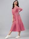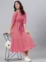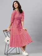 Sleeveless Design, Katha Work Detail, Midi Length, Round Neck, Traditional Fusion, Adjustable Belt Style, Comfortable Fit, Versatile Dress