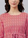 Sleeveless Design, Katha Work Detail, Midi Length, Round Neck, Traditional Fusion, Adjustable Belt Style, Comfortable Fit, Versatile Dress