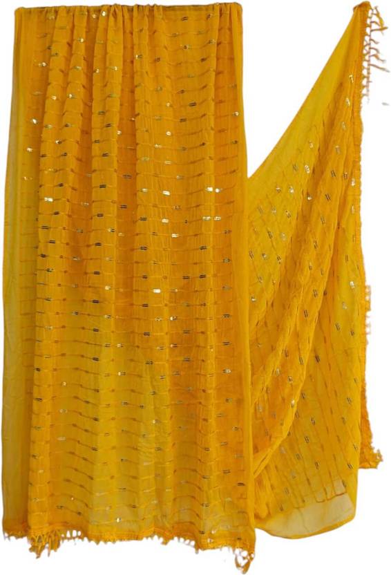 KHATRI Chiffon Embellished Yellow Women Dupatta
