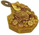 KHATU SHYAM ENTERPRISES Crystal Feng Shui Money Frog with Coin, Lucky Money Toad Decorations, Ideal for Attracting Wealth Decorative Showpiece - 5 cm (Metal, Gold)