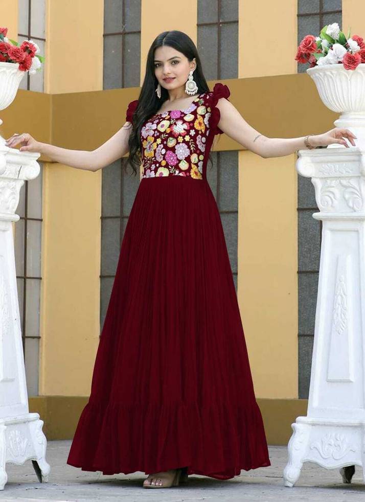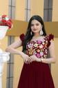 Floral Print Cotton Silk Stitched Flared/A-line Gown (Black)