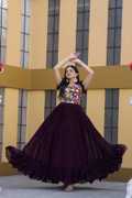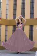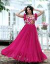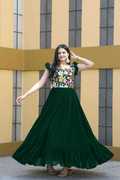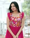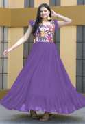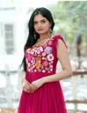 Floral Print Cotton Silk Stitched Flared/A-line Gown (Red)