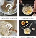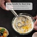 The sturdy yet flexible stainless steel wires effortlessly blend ingredients, ensuring a consistent and lump-free dough every time. The dough whisk is made with high-quality stainless steel wires, providing durability and resilience to handle various types of dough. The unique design incorporates a traditional whisk with a dough hook, allowing you to effortlessly mix and knead your dough in one efficient motion. Ideal for a wide range of dough types, including bread, pizza, pastry, and more. It's an essential tool for both amateur bakers and professional chefs.