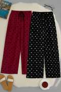 🌸 Fabric, Soft & breathable cotton blend for all-day comfort 💖 Design, Cute heart print pyjama, perfect for lounge & nightwear 🎀 Waistband, Elastic waistband with adjustable drawstring for a snug fit 👗 Fit, Regular fit with straight cut for relaxed movement 🏡 Versatile Wear, Ideal for nightwear, home wear, casual wear & travel 🧺 Care Instructions, Easy to wash, quick dry & durable fabric 📦 Package Contents, 2 Women’s Pyjama (two piece)