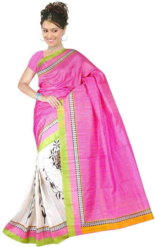 Khoobee Presents White,Pink Bhagalpuri Silk Printed Saree With Unstitched Bhagalpuri Silk Blouse Piece. Having Absolute Great Designs. Charming Color Combination Makes It More Able. Ideal For Parties And Festivals. Our Sarees Are Designed And Stitched Using High Grade Fabrics And Yarns Under The Strict Surveillance Of Our Well-Versed Designers. We Are Offering Our Sarees At Most Reasonable Prices.