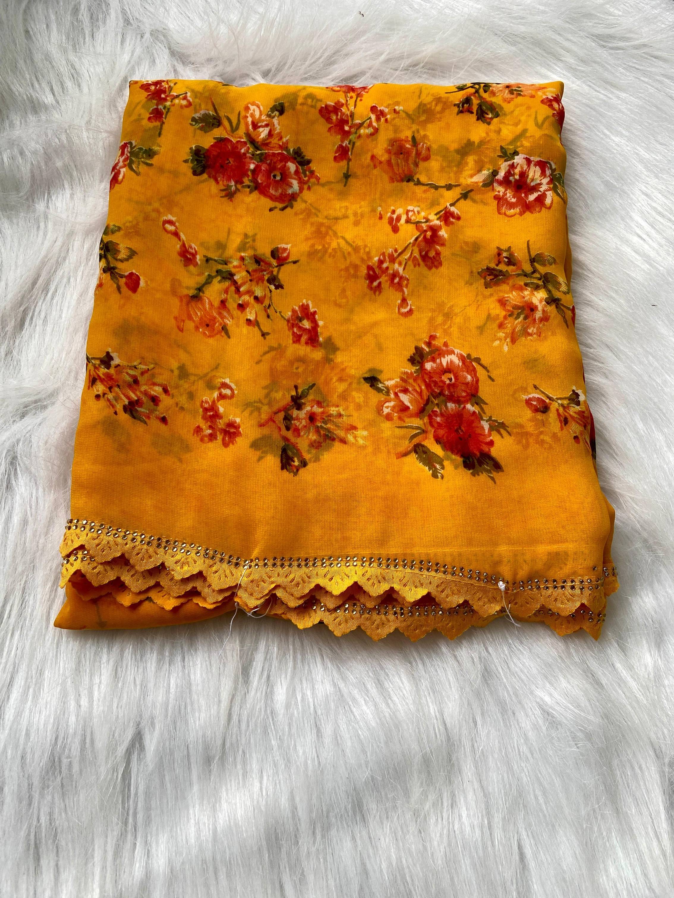 KHRITI FAB Unstitched Georgette Blouse Material Embroidered