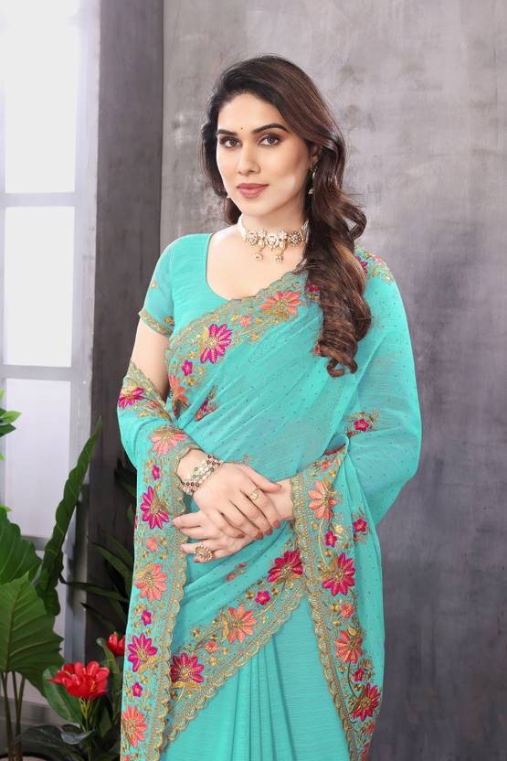 KHRITI FAB Unstitched Georgette Blouse Material Embroidered