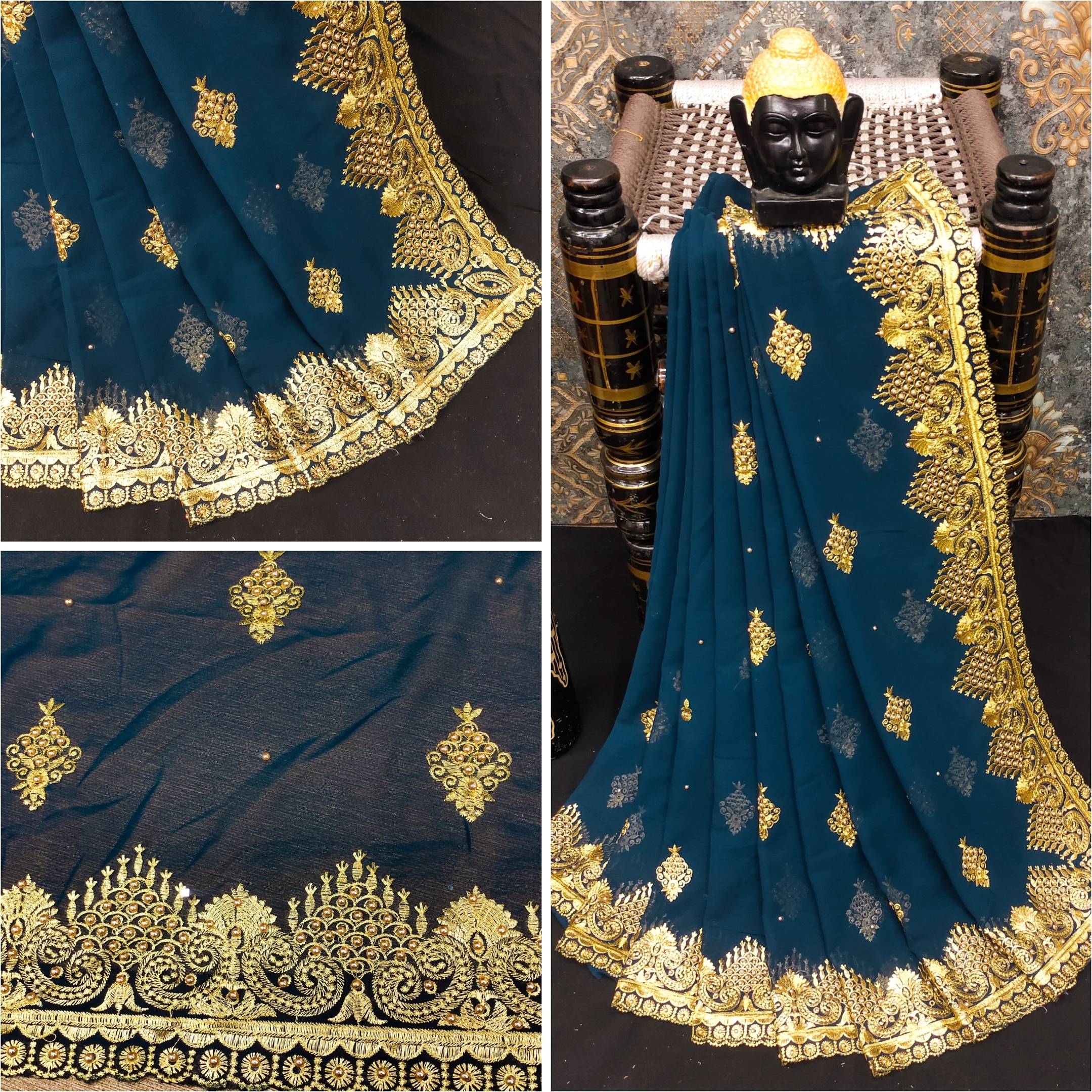 KHRITI FAB Georgette Embroidered Blouse Material