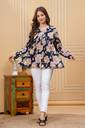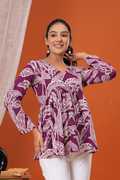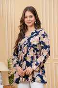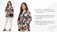 Made from viscose rayon, this kurti is lightweight, breathable and designed to maintain its shape over time. In addition, the fabric feels soft on your skin and offers a smooth finish, making it suitable for extended wear. Since it retains the pattern well and resists pilling, this kurti can remain visually appealing through repeated use.