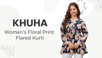 KHUHA Women Floral Print Flared Kurta (Dark Blue)