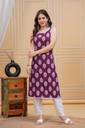 KHUHA Women Printed Straight Kurta (Purple)