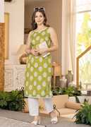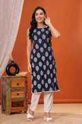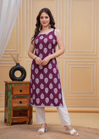Featuring a traditional block print pattern, this women's kurta showcases detailed paisley motifs that reflect a handcrafted aesthetic. Moreover, with its rooted, artistic appeal, the printed pattern adds depth without overwhelming the overall look. The traditional aesthetic aligns seamlessly with modern preferences, offering a balanced style that fits a range of wardrobes.