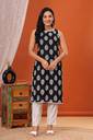 Featuring a traditional block print pattern, this women's kurta showcases detailed paisley motifs that reflect a handcrafted aesthetic. Moreover, with its rooted, artistic appeal, the printed pattern adds depth without overwhelming the overall look. The traditional aesthetic aligns seamlessly with modern preferences, offering a balanced style that fits a range of wardrobes.