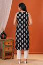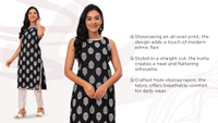 Owing to its versatile design, this kurta transitions well across different settings. So, whether styled with churidars for work or paired with denim for a casual day out, its adaptability allows for repeated wear across occasions. Its easy-care nature and timeless appeal make this kurta a valuable addition to any wardrobe. Moreover, the adaptability of the silhouette and print makes it easy to incorporate into contemporary and traditional wardrobes.