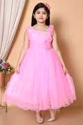 KHUKU ENTERPRISE Special Girls' Party Dress – Sweet Sleeveless net Gown with Bow & Floral Details.Make your little princess shine with this stunning net party dress! Perfect for birthdays, weddings, and festive occasions, this dress combines elegance .This dress have a one frock and one net inner wear.