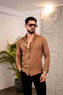 Khushi Creation Men Regular Fit Solid Spread Collar Casual Shirt