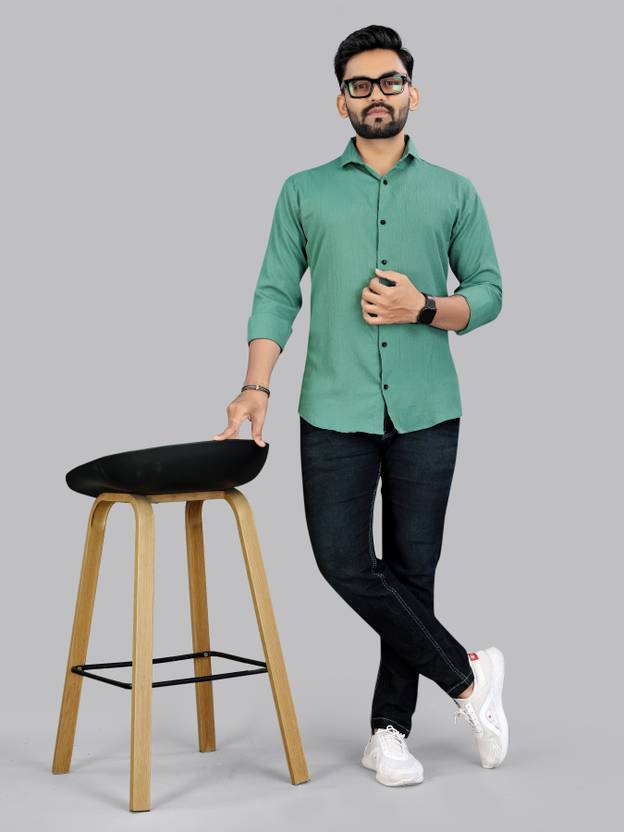 Men Regular Fit Solid Spread Collar Casual Shirt
