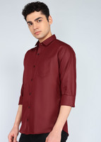 Khushi Creation Men Solid Casual Maroon Shirt