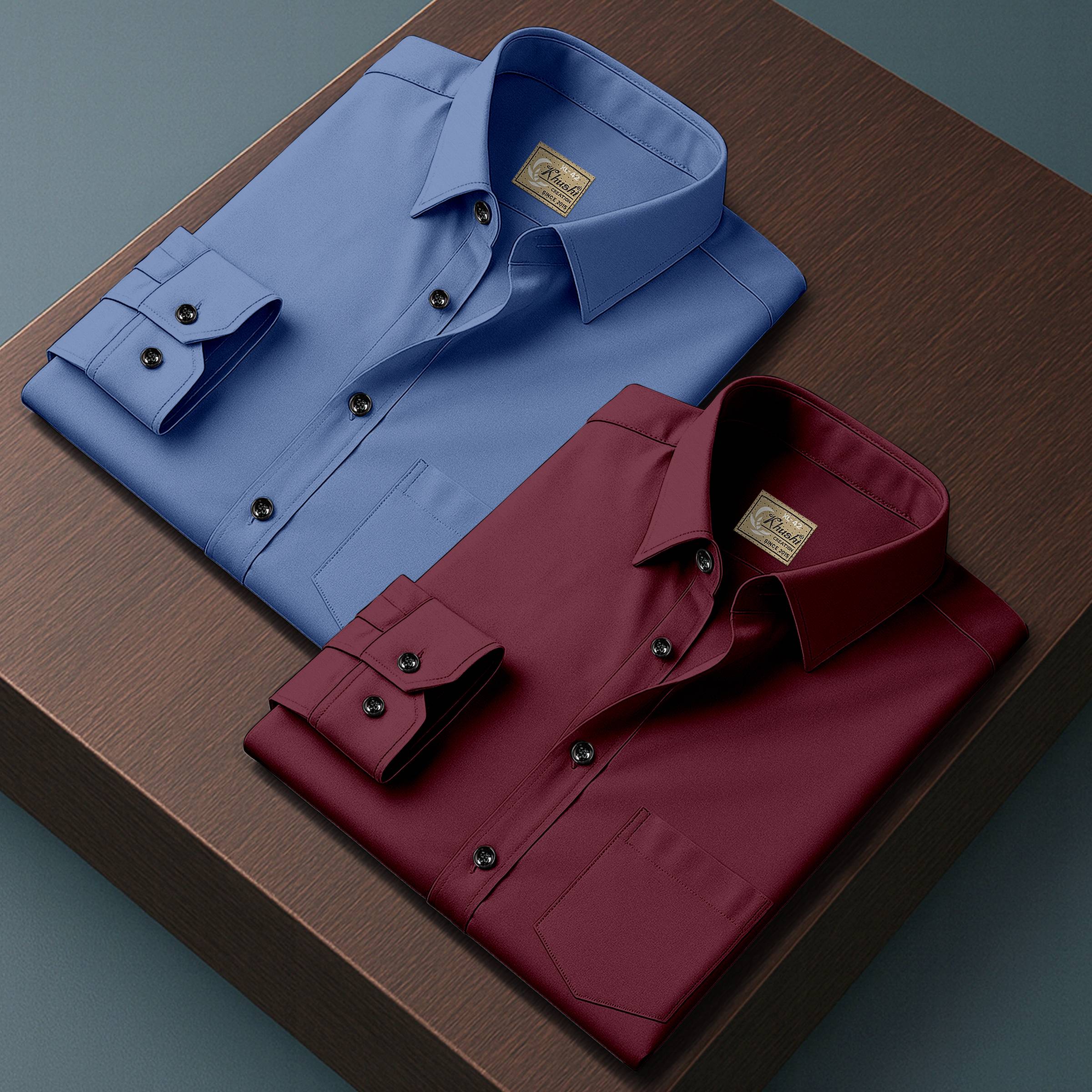 IKON FASHION Men Solid Casual Blue Shirt (Pack of 2)