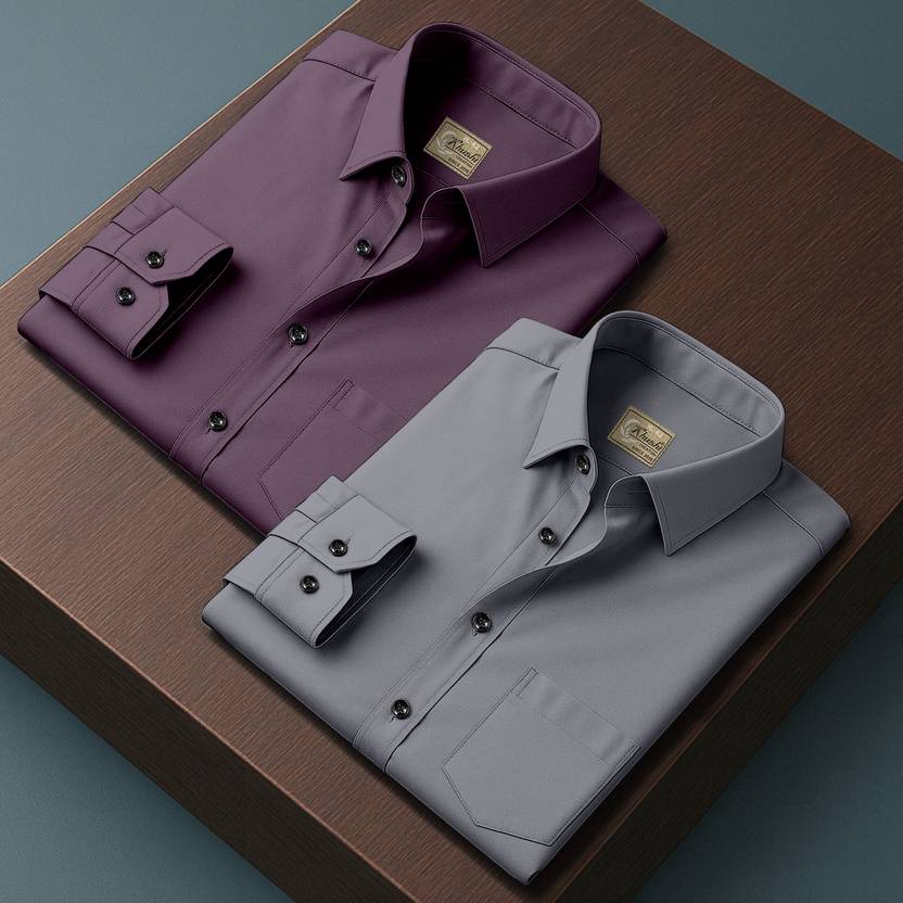 IKON FASHION Men Solid Casual Purple Shirt (Pack of 2)