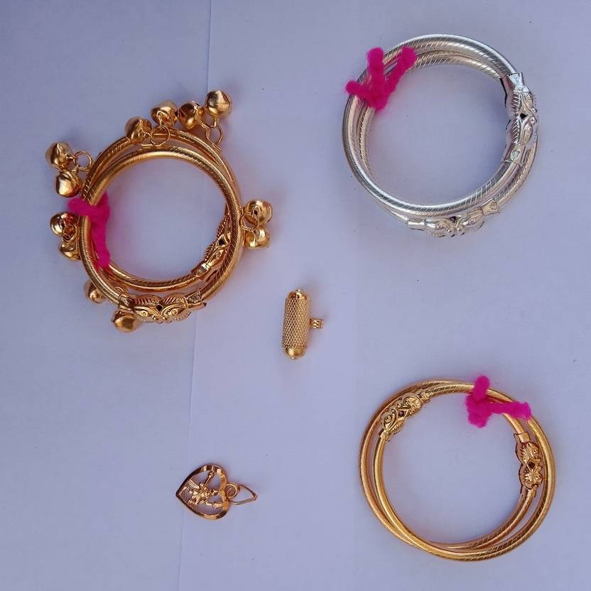 NAZARIYA baby boy girls kids kada silver gold plated ghunghru tabiz hanuman locket khadua EVIL EYE FOR BABY BOY AND GIRL kids, 0-2 YEARS | KIDS BRACELET | BABY ACCESSORIES | BABY BRACELET | NAZARIYA| NAZARIA | BABY NAZARIA | BABY ANKLETS |ANKLETS |NAZARIYE | JEWELLERY | KIDS JEWELLERY |NAZARIA FOR KIDS | pack of 8pc inside image