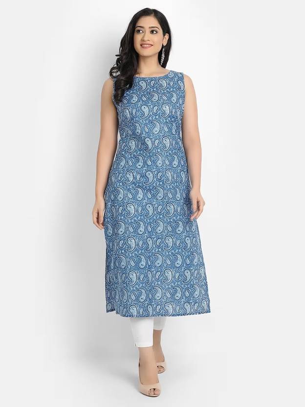 Women Printed Viscose Rayon A-line Kurta (Blue)