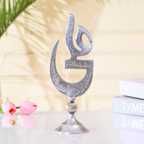 Enhance your home or office decor with this exquisite Islamic Muslim Table Shelf Decor Gift Collectible, featuring the revered Ya Ali symbol. Forged from high-quality aluminum, this piece is a testament to intricate craftsmanship and spiritual devotion. The decor item is elegantly engraved with the holy Quranic Ayats, making it a spiritually enriching addition to your space. With dimensions of 10 inches by 3.5 inches, it is perfectly sized for display on tables, shelves, or mantles. Made from premium aluminum, this decor item ensures durability and a tarnish-resistant finish, maintaining its pristine look over time. Its elegant design adds a touch of spiritual elegance, creating a serene and inspiring ambiance in any setting. This Ya Ali symbol is an ideal gift for loved ones, perfect for special occasions such as Eid, Ramadan, weddings, or religious gatherings. Its versatile design makes it suitable for use as a table centerpiece, shelf ornament, or as part of a larger decorative arrangement. Elevate your decor with this beautiful and meaningful collectible.
