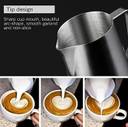 Milk frothing pitcher helps you to froth or steam milk for lattes, measure liquids and serve milk or cream. The milk frothing jug made of high quality stainless steel and has a mirror finished look.