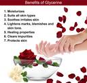 Glycerin, also called glycerol, happens to be a colourless, odourless, sweet-tasting liquid that has a very thick, viscous consistency. This medication is used as a moisturizer to treat or prevent dry, rough, scaly, itchy skin and minor skin irritations (e.g., diaper rash, skin burns from radiation therapy). Emollients are substances that soften and moisturize the skin and decrease itching and flaking.