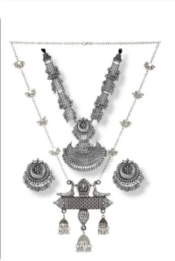 German silver D neclace with shape of pigeon necklace & earring combo set of 2 necklace for women and girls latest design trending oxidised German silver brass quality