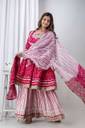 Women Cotton Blend Kurta Sharara Ethnic Jacket Set