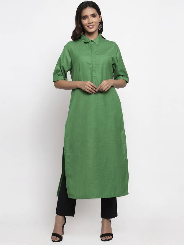 Women Solid Viscose Rayon Straight Kurta (Green)