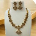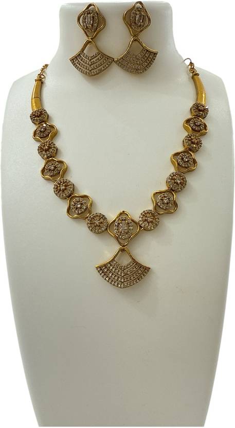 Artificial Gold Plated Necklace Set for Women + Add elegance to your look with this premium gold plated necklace set, designed for weddings, parties, and festive occasions. * Material: High-quality alloy with long-lasting gold plating * Package: 1 Necklace + 1 Pair of Earrings * Lightweight & comfortable for all-day wear * Perfect gift for wife, mother, sister or friend Care Instructions: Avoid direct contact with water, perfumes, and chemicals. Store in a jewellery box for long life.