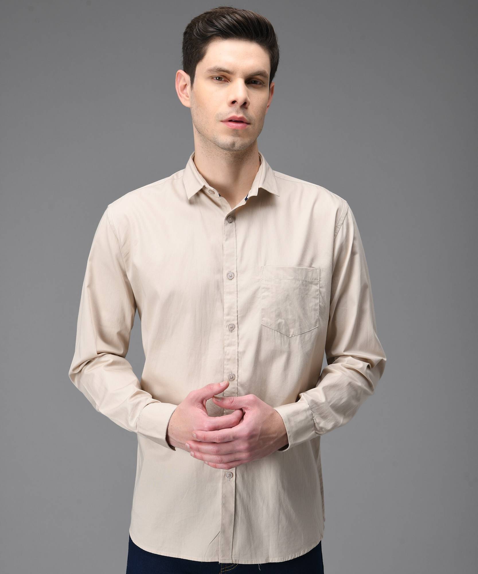 Kibit Men Solid Casual Beige Shirt