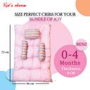 Kid's Charm Zigzag Baby's Cotton Sleeping Bed set for Unisex New Born 0-4 Months Old Flat Bed Luxury Crib (Fabric, Pink)