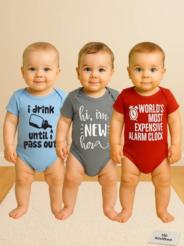 KidBee Romper For Baby Boys & Baby Girls Printed Hosiery, Cotton Blend (Multicolor, Pack of 3)
