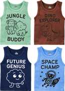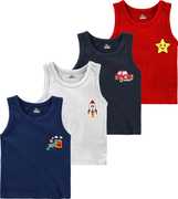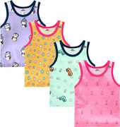 KidBee cotton sleeveless vests are thoughtfully designed for boys aged 0 to 10 years, ensuring all-day comfort, softness, and breathability. Crafted from high-quality 100% cotton fabric, these vests are gentle on the skin, lightweight, and ideal for every season—whether worn alone in summers or layered under clothing in winters. The sleeveless design with soft ribbed armholes and neckline allows free movement and a flexible fit, perfect for active toddlers and growing kids. Each vest features child-friendly prints like jungle buddies, cute dinosaurs, astronauts, cool slogans, and happy sunshine graphics that spark imagination and fun. These vests are easy to wear and remove, making them perfect for daily wear at home, under school uniforms, during sleep, or while playing. Suitable to pair with shorts, pajamas, track pants, or dungarees, KidBee vests are durable, color-fast, and machine washable, making them a practical and playful essential in every child's wardrobe.