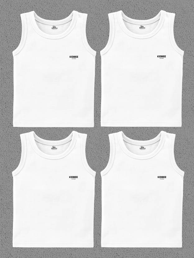 KidBee Vest For Boys Cotton (White, Pack of 4)