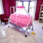 KIDDERY MAIA Premium Cradle for Infant with Mosquito Net & 4 Wheels Lock 0-8 Months Age (Pink)