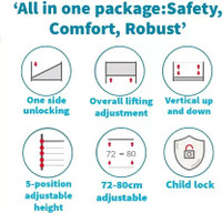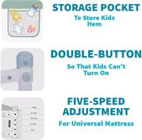 Ensuring an extra layer of safety, the bed rail guard incorporates a double lock protection system. Unlocking buttons are positioned on both sides, requiring simultaneous pressing to lift up or lower one side of the guard. This dual-lock feature makes it virtually impossible for babies to operate the guard independently, adding a crucial safety measure.