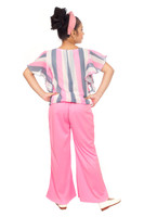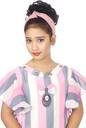 Adorned with bold and striped patterns, the top of this set exudes contemporary charm and youthful elegance. The vibrant stripes add a playful touch to the ensemble, creating a stylish aesthetic that is ideal for fashion-forward young girls. The solid pattern of pants offers a classic and timeless look that allows for mix-and-match wearing with diverse tops to create a unique appeal.