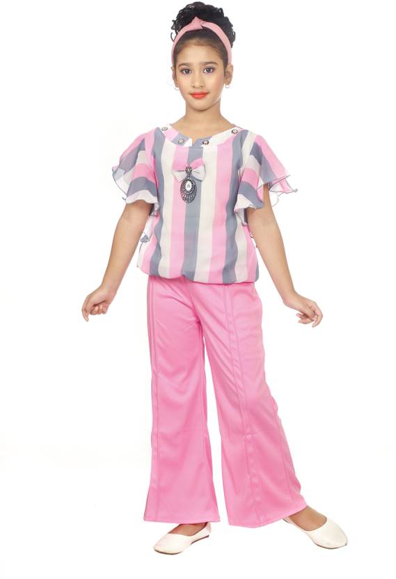 Offering a cohesive look, this set features a flared top and palazzo pants that complement each other well. The flared top adds a touch of femininity and elegance, while the palazzo pants offer comfort and ease of movement. Together, they create a harmonious ensemble that is both stylish and practical for young girls to wear on various occasions.