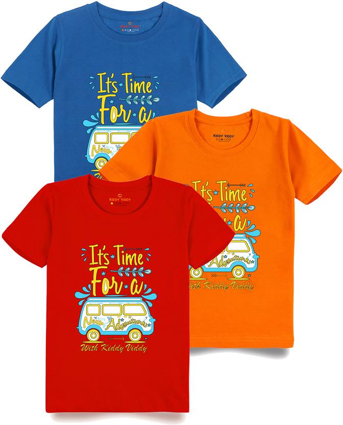 Kiddy Viddy Boys Printed Cotton Blend Regular T Shirt (Orange, Pack of 3)