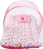 The Kiddystore Cotton Baby Bed Sized Bedding Set (Pink Circle, 1 Mosquito Net Bed, 1 Soft Pillow)