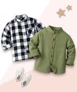 Discover delightful flair with this charming pack of two boys' long sleeve and short-sleeve button-down shirts. The first shirt showcases a stunning tropical print featuring navy monstera leaves, soft pink florals, and gentle peach accents on a crisp white background. The second shirt presents a refreshing blue and white checkered pattern that's both timeless and versatile. Crafted from a comfortable cotton blend fabric, both shirts feature traditional point collars, convenient front button closures, and quality stitching throughout. The checkered variant includes a practical chest pocket for added functionality. These regular-fit shirts are perfect for various occasions, from casual outings to holiday celebrations. The lightweight material make certain all-day comfortable, whether at school or family gatherings. Easily paired with shorts, trousers, or jeans, these shirts offer multiple styling options. The shirts feature straight hemlines and neat construction, making them ideal for growing boys. Machine washable in cold water with tumble dry low setting for easy. Available in various sizes to make sure the perfect fit for your little one.