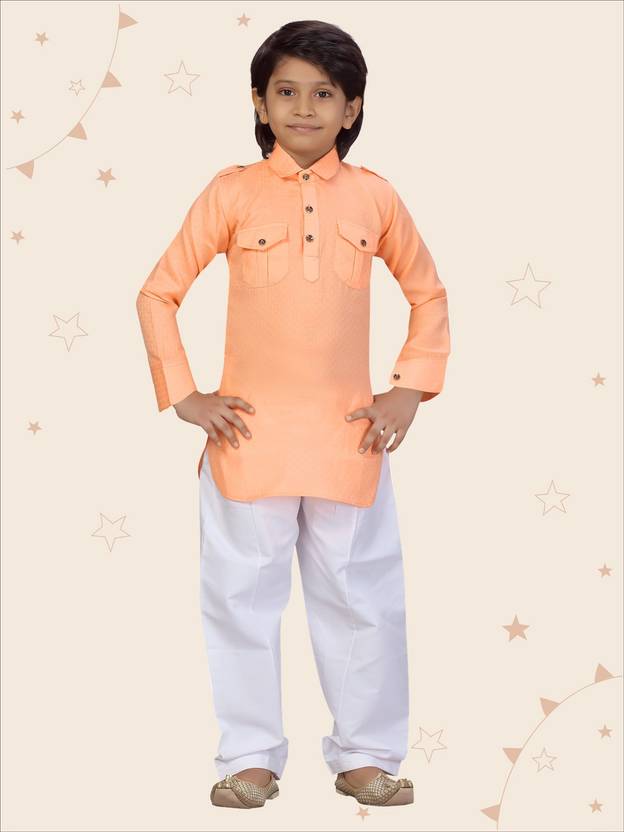 Boys Festive & Party Pathani Suit Set (Orange Pack of 1)