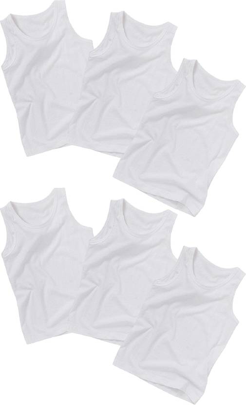 Kids Basket Vest For Boys Pure Cotton (White, Pack of 6)